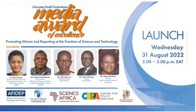 The Emerging Health Technologies Media Award of Excellence aims to advance public awareness and discourse on emerging health technologies and their potential to improve health and save millions of lives on the African continent. These EHTs, which include gene drives for malaria control, artificial intelligence, drones, and microgrids, have been prioritised by the African Union based on the significant impact they could have in positively transforming the health of the continent.