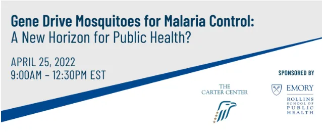 Recent advances in gene drive mosquito technologies have created new possibilities for accelerating the elimination of malaria and other mosquito-transmitted diseases. But the implications of these new technologies for public health policy and practice have not been fully explored. This symposium, co-hosted by The Carter Center and the Rollins School of Public Health at Emory University, will bring together scientists, public health practitioners, ethicists, historians, and ministry of health officials from malaria-endemic countries to discuss issues surrounding the integration of these new technologies into malaria control programs.